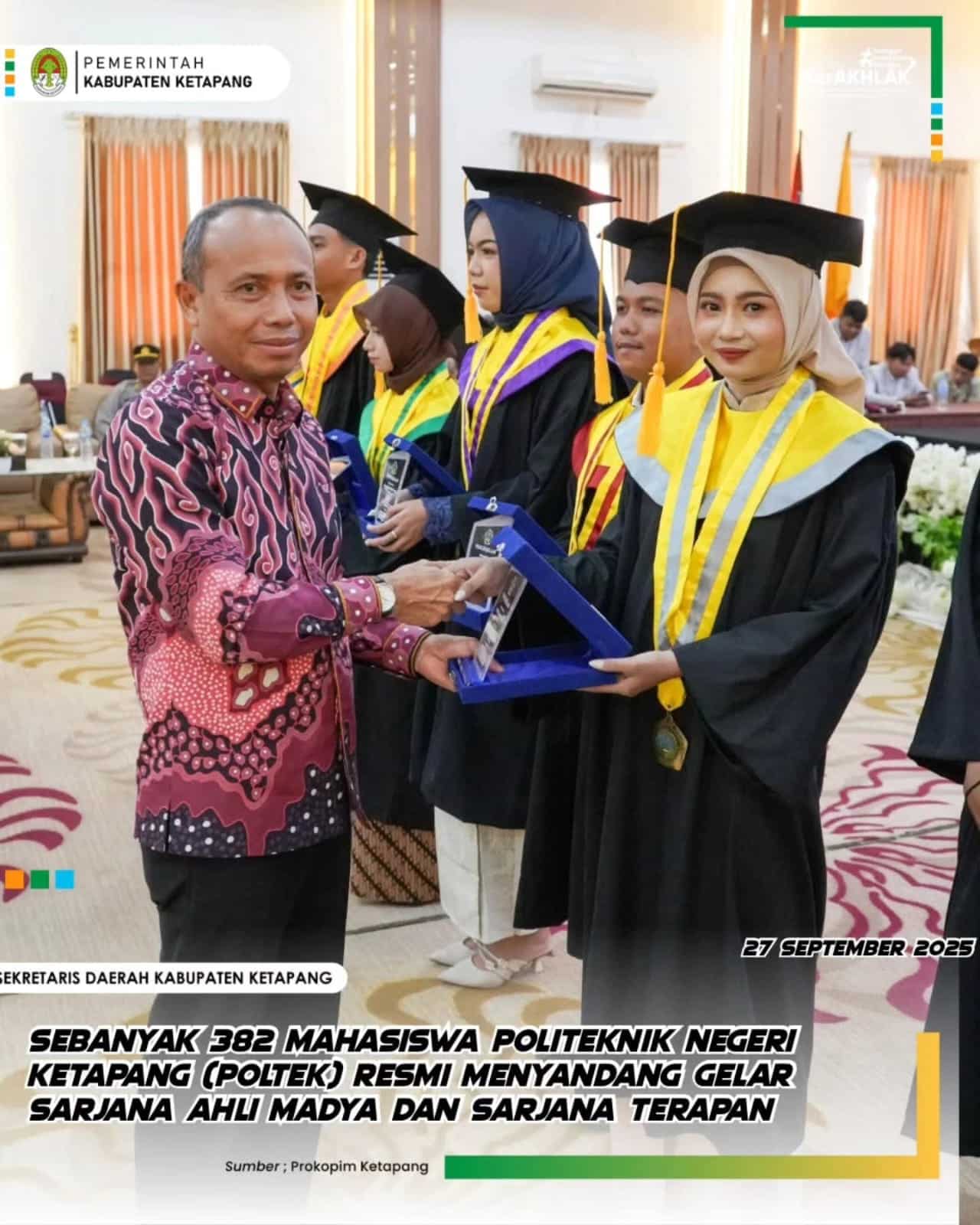 Ketapang ( soror10)- Sekretaris Daerah Kabupaten Ketapang Repalianto, Hadiri Wisuda ke-15 Politeknik Negeri Ketapang Tahun 2025. Bertempat di Ballroom Hotel Borneo Ketapang, Sabtu (27/09/2025). Dalam kesempatan tersebut sekda menyampaikan ucapan…