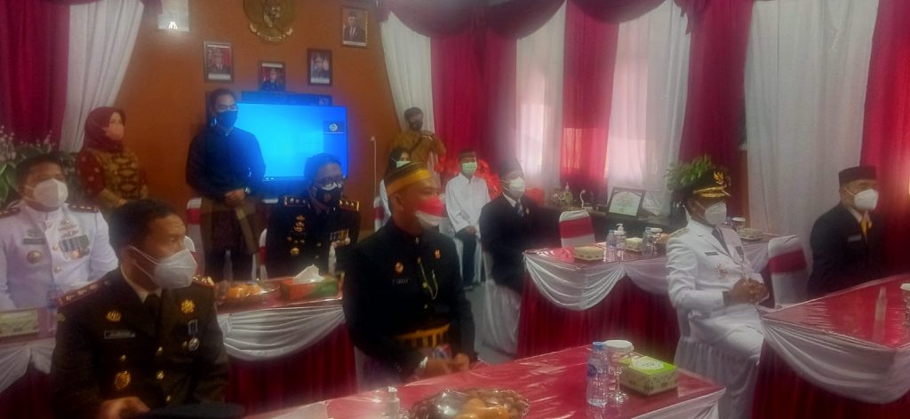 Didampingi Forkopimda , Farhan menyampaikan keputusan remisi kepada dua orang napi, laki laki dan perempuan, secara simbolis di Aula , LP Ketapang, 17/8/21 siang.
