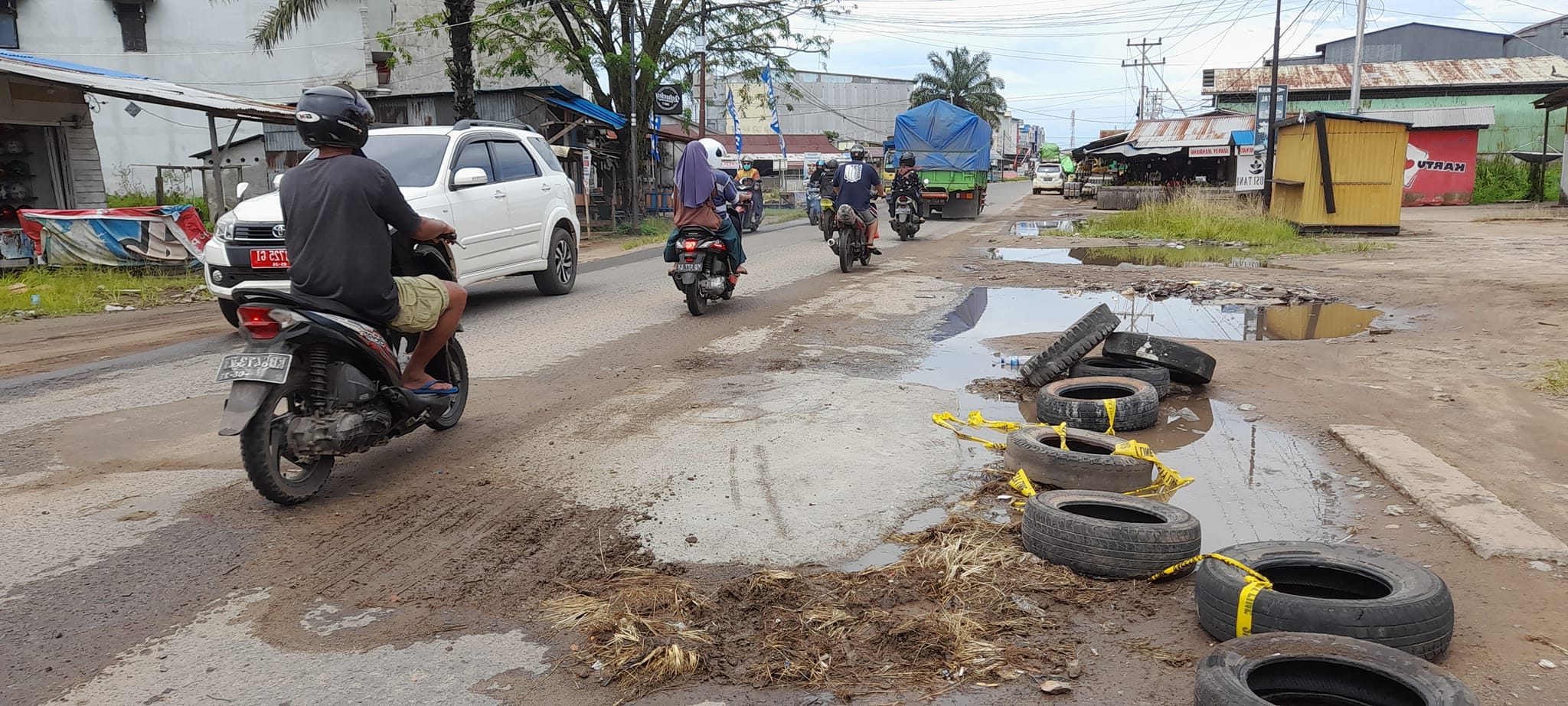 TITIK titik kerusakan jalan provinsi dari turunan Jembatan Pawan 1 hingga Pasar Tuan Tuan, sejak beberapa hari ini, mulai mendapatkan perbaikan dan masih dalam penyelesaian.