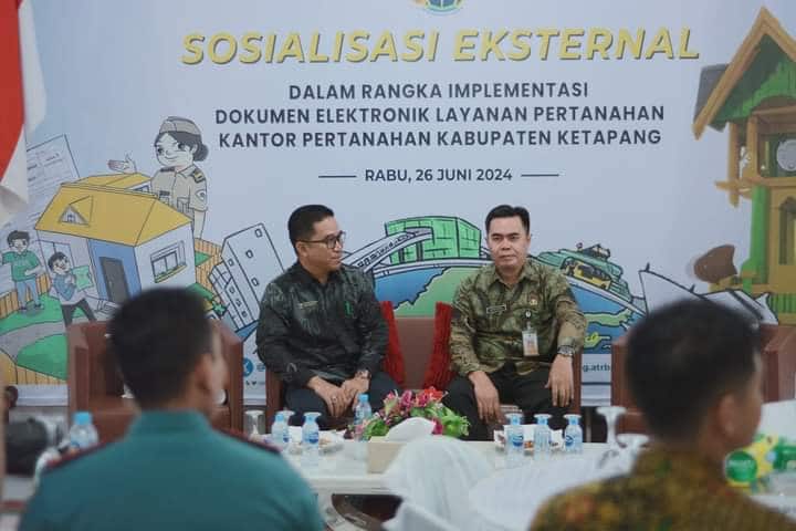 Ketapang ( sorot10) – Mewakili Bupati Asisten Sekda Bidang Pemerintahan dan Kesejahteraan Rakyat Heryandi, menghadiri Sosialisasi Eksternal dalam rangka Implementasi Dokumen Elektronik Layanan Pertanahan, Kantor Pertanahan Kabupaten Ketapang, Rabu (26/06/2024) di Aula BPN Ketapang.