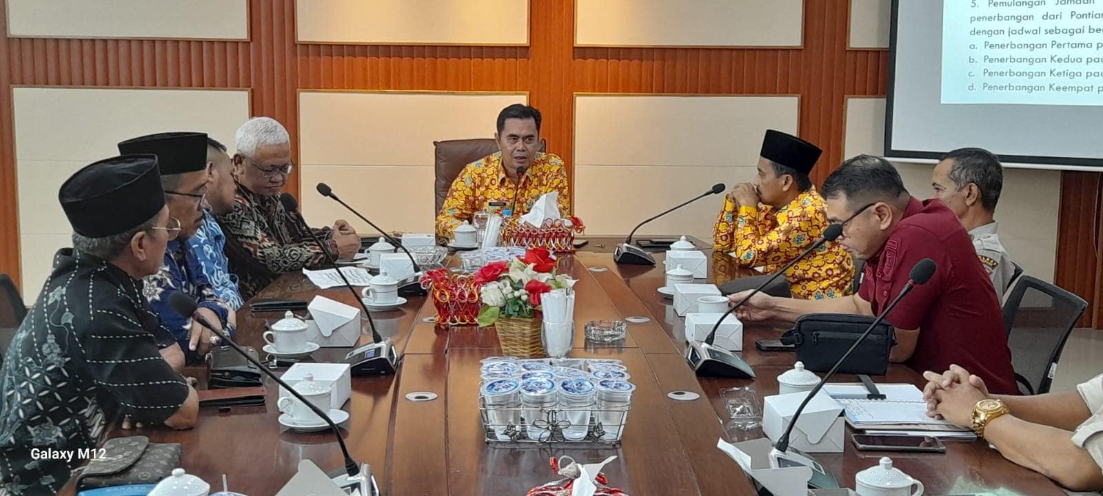 Rencana kepulangan Jemaah Haji Ketapang dibahas dalam rapat koordinasi fasilitasi kepulangan Jemaah Haji Ketapang yang dipimpin Asisten 1 Sekda Heryandi dihadiri Kantor Kementrian Agama Ketapang, Ketua Yayasan Masjid Agung Al Ikhlas, KBIH, BSI, Polres, Dinkes, Dishub, Imigrasi, Bandara ,Pol PP dan Kesra. Kamis 4/7/2024. Di ruang rapat Kantor Bupati.